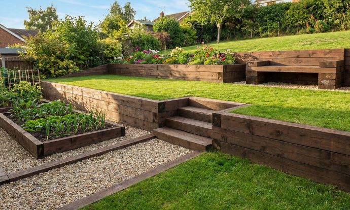 If your garden has uneven ground or slopes, sleepers can be used to build rustic steps or terraced levels. This not only improves accessibility but also transforms challenging landscapes into visually appealing garden features.
